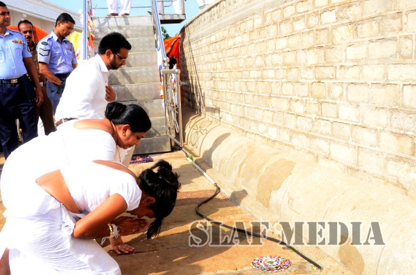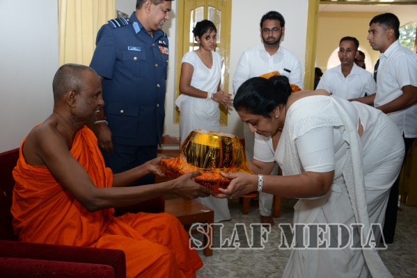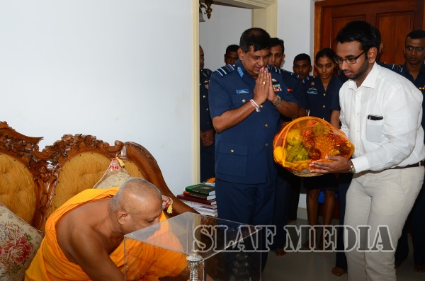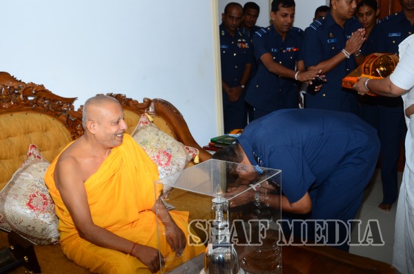 ගුවන් හමුදාධිපතිතුමන් රුවන්වැලි මහසෑ විහාරාධිපති පල්ලේගම හේමරතන නාහිමියන් හා ඉසුරුමුණි විහාරාධිපති මතව ශ්රී සුමංගල නාහිමියන් ද බැහැදැක ආශිරිවාද ලබාගත්තේය.