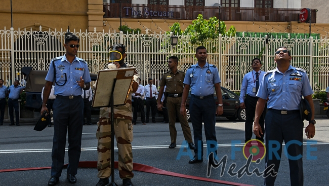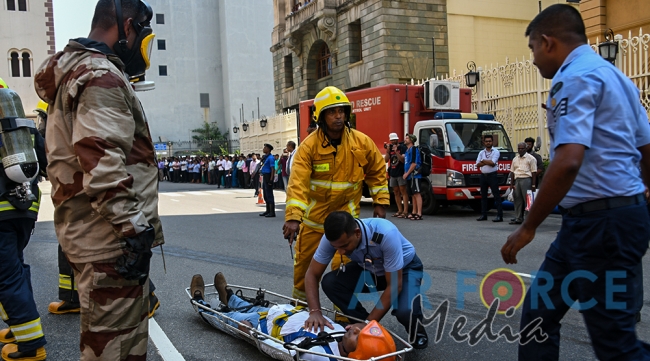 ගුවන් හමුදාවේ සේවා පුද්ගලයන් 33 දෙනෙකු මෙම ගිනි නිවාරණ සහ මුදවා ගැනීමේ අභ්යාස නිදර්ශනය සදහා සහභාගී වී සිටි අතර ප්රධාන ගිනි නිවාරණ නිළධාරී විංග් කමාන්ඩර් ආර් එම් සී ජේ කේ රත්නායක මහතාගේ හා විංග් කමාන්ඩර් ආර් එන් ඩී සේනාධීර මහතාගේ අධීක්ෂණය යටතේ අභ්යාසය සිදු විය.