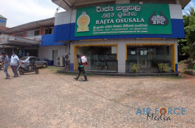 ශ්රී ලංකා ගුවන් හමුදා බණ්ඩාරනායක ජාත්යන්තර ගුවන්තොටුපළ කඳවුරෙහි ස්ථපිත කොට ඇති රසායනික ජීව විද්යාත්මක විකිරණශීලී න්යෂ්ටික හා පුපුරණ ද්රව්ය (සීබීආර්එන්ඊ) අංශය දිවයිනේ විවිධ නගරවල විෂබීජ නාශක මෙහෙයුම් දිගටම සිදුකරගෙන යයි.