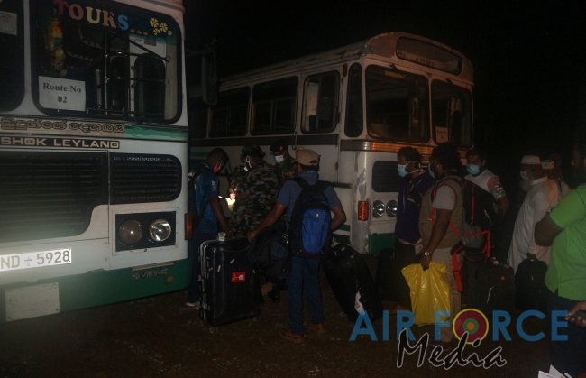 ඉරණමඩු ගුවන් හමුදා කදවුරේ අණදෙන නිළධාරි ගෲප් කැප්ටන් රොහාන් පතිරණ ඇතුලු කාර්යමණ්ඩලයේ අධීක්ෂණය යටතේ සාර්ථකව නිරෝධායන කටයුතු නිම කිරීමෙන් පසු ඔවුන් නිවෙස් කරා පිටත්කර හරින ලදී.
