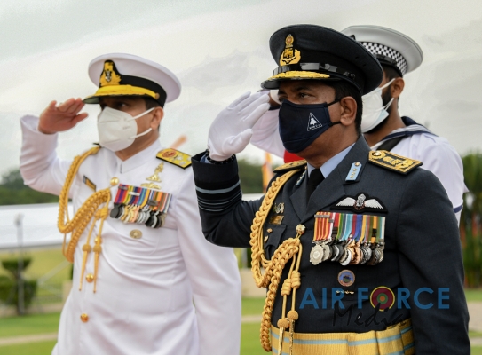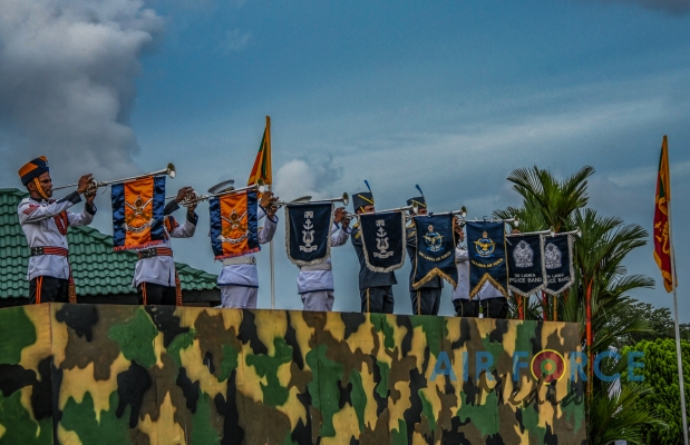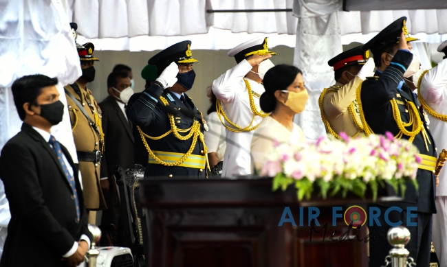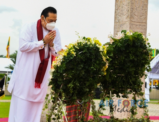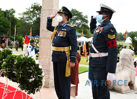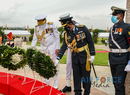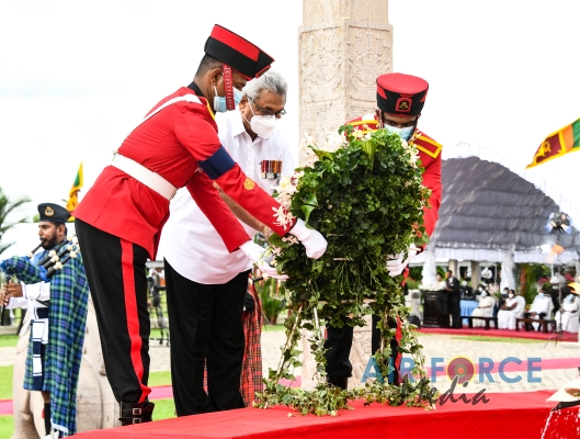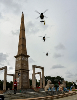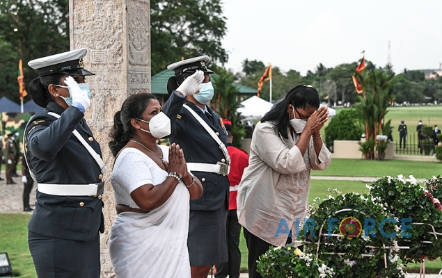 රත්මලාන ගුවන් හමුදා කඳවුරේ අංක 4 ප්රභූ බලඝණයේ අණදෙන නිලධාරී ගෲප් කැප්ටන් අසේල කුරුවිටගේ නායකත්වයෙන් යුත් බෙල් 412 හෙලිකොප්ටර් යානා අඩි 90 ක් උස ස්මාරකය හරහා පියාසර කරමින් ස්මාරක භූමිය වෙත මල් පෙති හෙලමින් මියගිය විරුවන්ට පුෂ්පෝපහාර දැක්වීමේ ආරම්භය සංකේතවත් කරන ලදි.