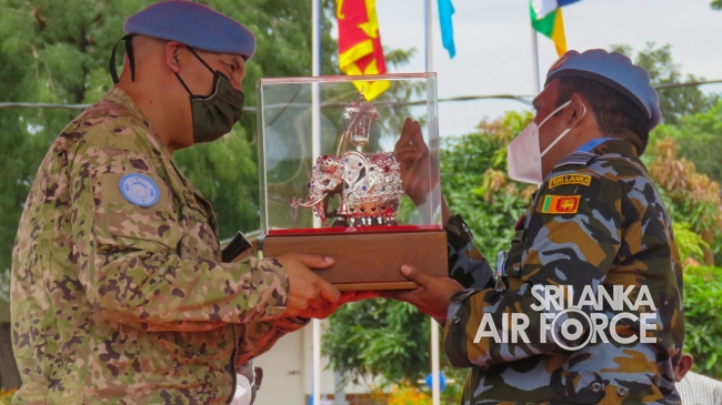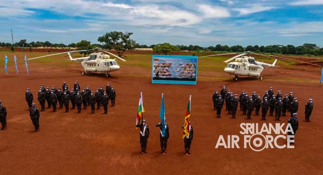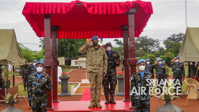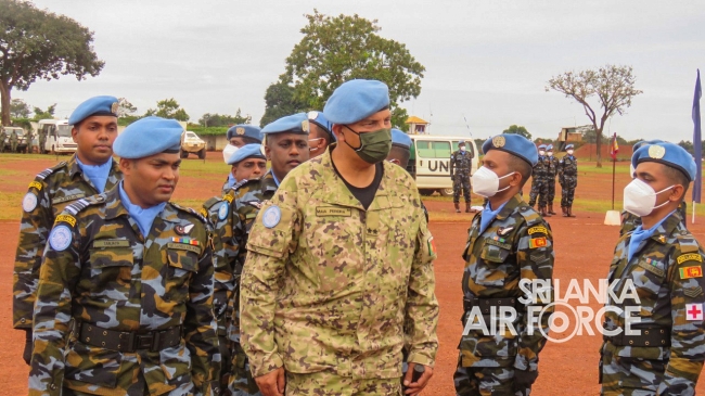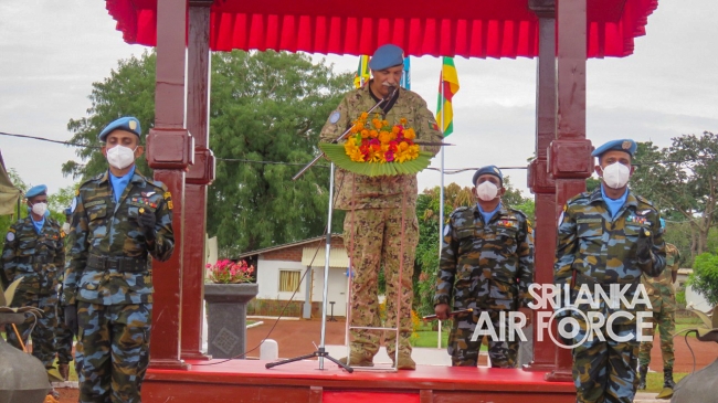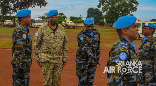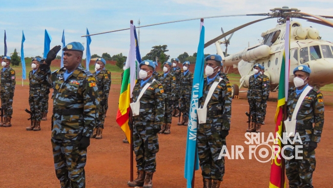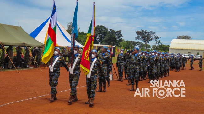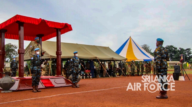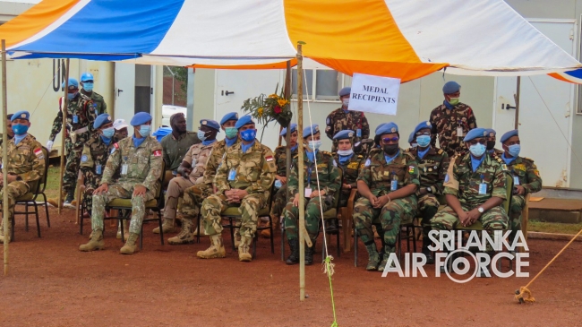 මධ්යම අප්රිකාවේ එක්සත් ජාතීන්ගේ සාම සාධක සේවා රාජකාරි කටයුතු සදහා ශ්රී ලංකා ගුවන් හමුදාව නියෝජනය කරමින් සාර්ථකව රාජකාරි සිදුකල 06 වන සාමසාධක හමුදා බලඇණිය සදහා පදක්කම් ප්රධානය කිරිමේ පෙළපාලි උත්සවයක් 2021 සැප්තැම්බර් මස 14 වන දින මධ්යම අප්රිකානු ජනරජයේ 6 වන සාමසාධක හමුදා අනුඛන්ඩ පරිශ්රයේදි කොවිඩ් 19 වැලැක්විමේ මාර්ගෝපදේශයන්ට අනූකූලව පවත්වන ලදි. මෙම අවස්ථාව සදහා ප්රධාන ආරාධිත අමුත්තා වශයෙන් නියෝජ්ය බලසේනා අඥාපති මේජර් ජෙනරාල් පාවුලෝ පෙරෙයිරා සහභාගි වු අතර අනුඛන්ඩ අණදෙන නිලධාරි විංග් කමාන්ඩර් ජීත් සමරසේකර විසින් එම මහතා පිළිගන්නා ලදි.