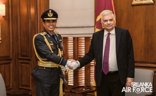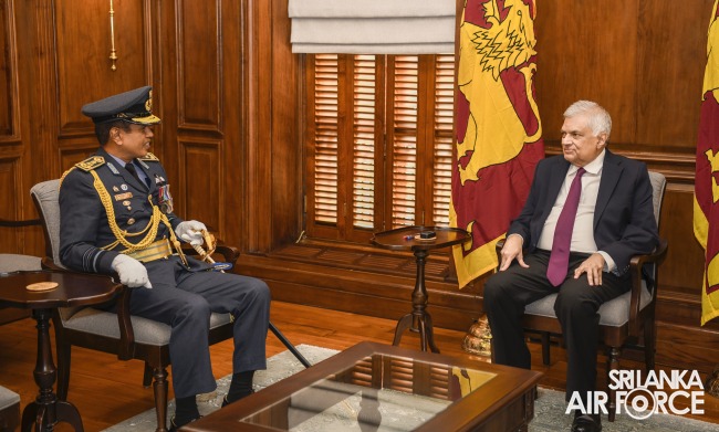 ගුවන් හමුදාධිපති එයාර් මාර්ෂල් උදේනි රාජපක්ෂ මහතා සහ ශ්රී ලංකා ප්රජාතාන්ත්රික සමාජවාදී ජනරජයේ ජනාධිපති, ත්රිවිධ හමුදාවේ සේනාධිනායක ගරු.රනිල් වික්රමසිංහ මහතා අතර හමුවක් 2023 ජූලි 05 වන දින ජනාධිපති ලේකම් කාර්යාලයේදී සිදුකරන ලදී.