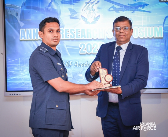A total of twenty research papers were selected for the symposium, of which six papers were presented by the respective researchers. Following the evaluation process, the research paper titled “Strategic Implementation of Human–AI Collaboration in Air Defence Command and Control: A Solution for the Dearth of Manpower in Developing Air Forces”, presented by Squadron Leader LKMKB Alawala, was adjudged the Best Research Paper.