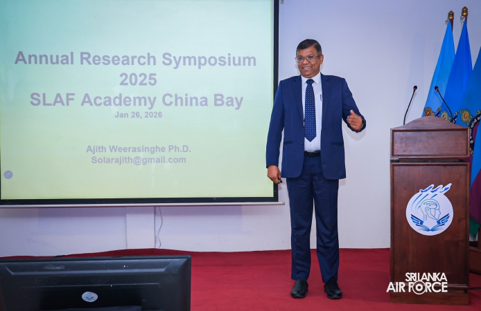 The Annual Research Symposium 2025 (ARS-2025) was successfully concluded for the second consecutive year at the Sri Lanka Air Force Academy, China Bay, yesterday (26 January 2026). The symposium was conducted under the patronage of the Commandant, SLAF Academy China Bay, Air Commodore Amal Perera.