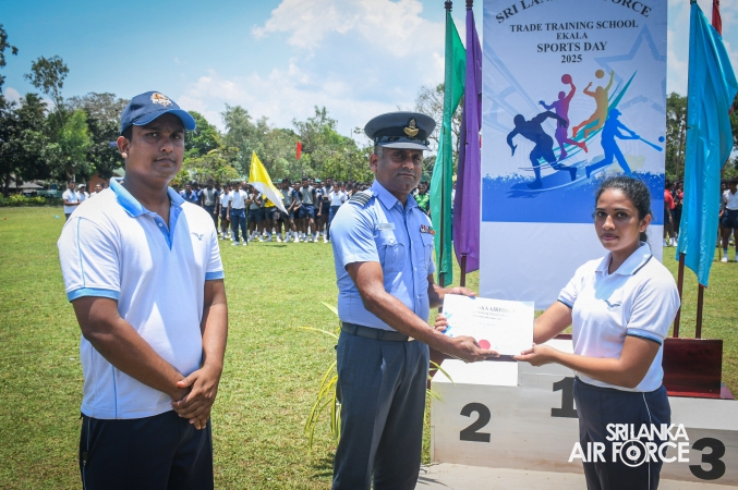 The full trainee strength, including Advanced Trainees and the Basic Trainees of No. 172 and No.173 Intakes participated in the event. All trainees were divided into four houses as Albatross, Skylark, Eagle and Falcon. House Albatross emerged as the champions of the Sports Meet.