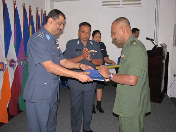 A total of 19 Officers from the Air Force in the rank of Squadron Leader and Flight Lieutenant, 4 Officers from the Army in the rank of Major and 4 Officers from the Navy in the rank of Lieutenant followed and graduated from this course successfully. The Junior Command and Staff College is accredited to the University of Kelaniya and all Officers who fulfill the required criteria will be awarded with a PG Diploma in Defence management.