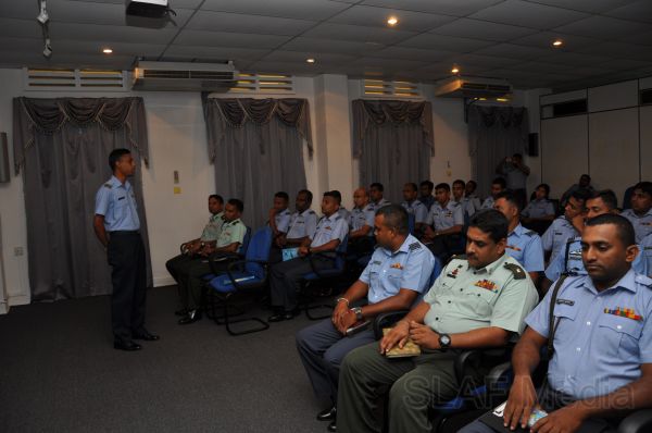 23 SLAF Officers in the rank of Squadron Leader and Flight Lieutenant, 04 Officers from the Army in the rank of Major and 04 Officers from the Navy in the rank of Lieutenant will be following this staff course for a duration of 14 weeks (04 Sep 2011-9 Dec 2011). Soon after the Opening address, a self introduction session by the student officers was done after which the Directing Staff gave an overview of the course to all the Student Officers.