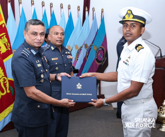 In his address to the graduates, Air Vice Marshal Silva highlighted the importance of continuous professional growth and the pursuit of excellence in military leadership. He encouraged the Officers to embody the highest principles of integrity, professionalism and service in their future appointments. He further commended the graduates for their dedication, perseverance and successful completion of the challenging course and extended his sincere congratulations on their achievement.