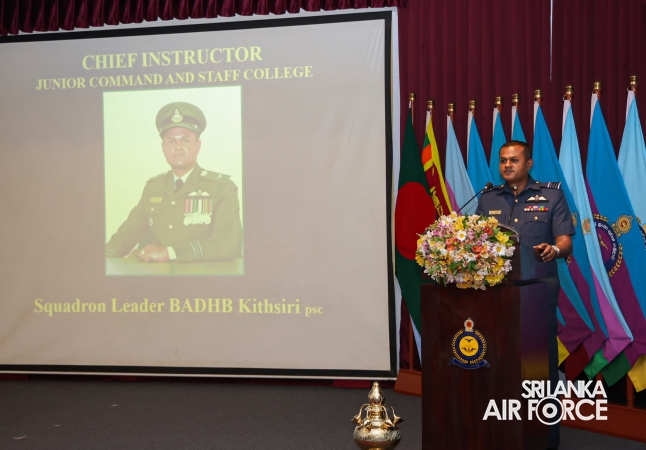In his address to the graduates, Air Vice Marshal DBV Weerasinghe highlighted the importance of continuous professional growth and the pursuit of excellence in military leadership. He encouraged the Officers to embody the highest principles of integrity, professionalism and service in their future appointments. He further commended the graduates for their dedication, perseverance and successful completion of the challenging course and extended his sincere congratulations on their achievements.