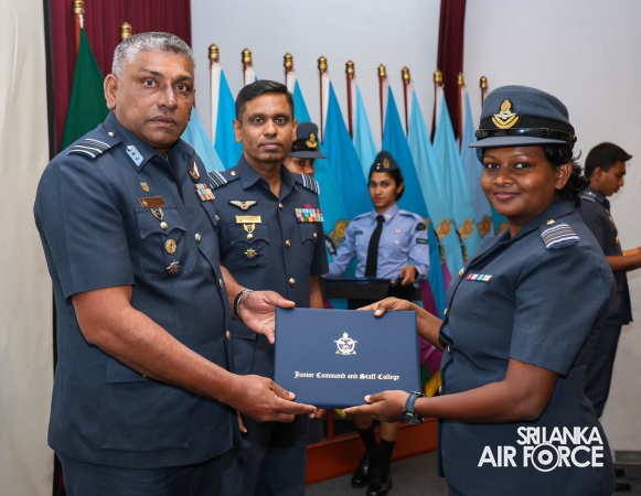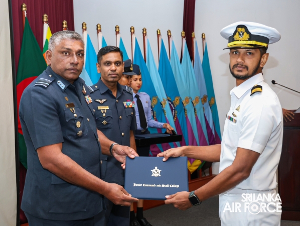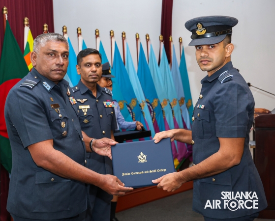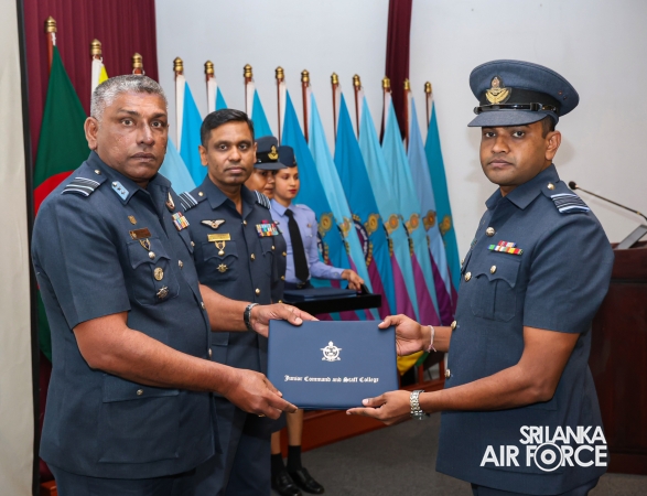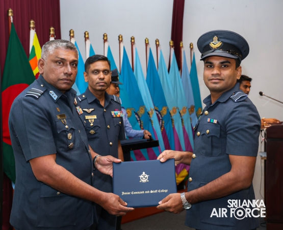 The Graduation Ceremony of the No. 79 Junior Command and Staff Course was held today (11 August 2025) at the auditorium of the Junior Command and Staff College, SLAF Academy China Bay. The event marked the successful conclusion of a comprehensive 14 weeks academic programme, attended by 29 Officers from the Sri Lanka Air Force and one Officer from the Sri Lanka Navy and One Officer from Bangladesh Army.