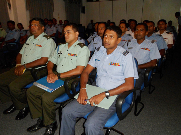 22 SLAF Officers in the rank of Squadron Leader and Flight Lieutenant, 05 Officers from the Army in the rank of Major and 04 Officers from the Navy in the rank of Lieutenant will be following this staff course for a duration of 14 weeks (09 Jan 2012 - 11 Apr 2012). Soon after the Opening address, a self introduction session by the student officers was done after which the Directing Staff gave an overview of the course to all the Student Officers.