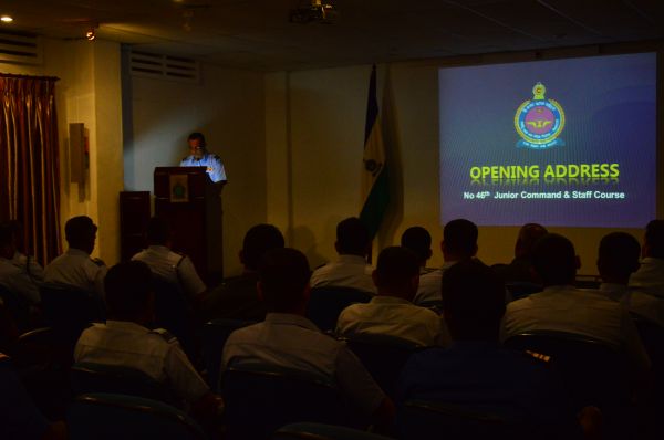 No. 46th Junior Command and Staff Course commenced on 25th August 2014 at Sri Lanka Air Force Academy China Bay. The opening address by the Commanding Officer was held at the Junior Command and Staff College auditorium at 0830 hrs on 25th August 2014.