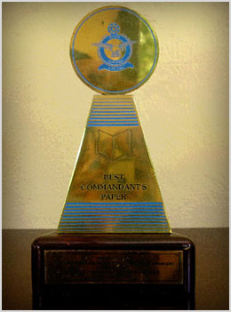 The trophy is awarded to the officer whose Commandant’s Research paper is written on a selected topic restricted to a total of 4500 words and adjudged as the best.