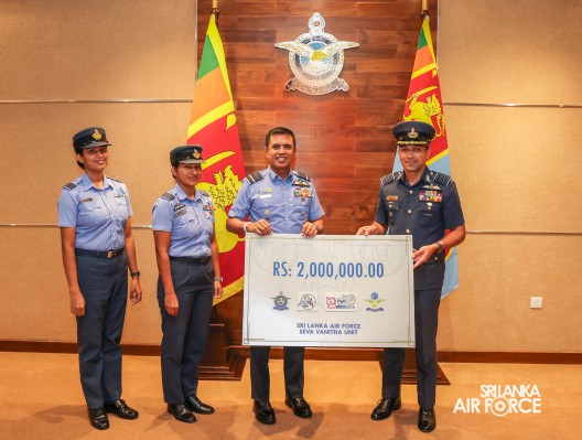 A special monetary donation was made today, 15 October 2024, for the 'Husma Plan' of the SLAF Seva Vanitha Unit by the Acting Commandant of SLAF Academy China Bay, Group Captain Asela Kuruwita. The donation was symbolically received by the Commander of the Air Force, Air Marshal Udeni Rajapaksa.The donation, amounting to Rs. Two Million, was generated from the profits earned during the '...