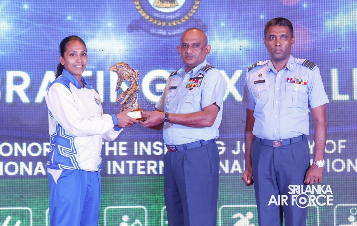 The Commander of the Air Force, Air Marshal Bandu Edirisinghe in his capacity as the President of the Air Force Sports Council (AFSC), graced a special felicitation ceremony held this morning (26 March 2025), at Air Force Headquarters. The ceremony honoured sportsmen and women of the SLAF who exceled in various disciplines including Boxing, Weightlifting, Judo, Lifesaving, Karate, Wrestl...