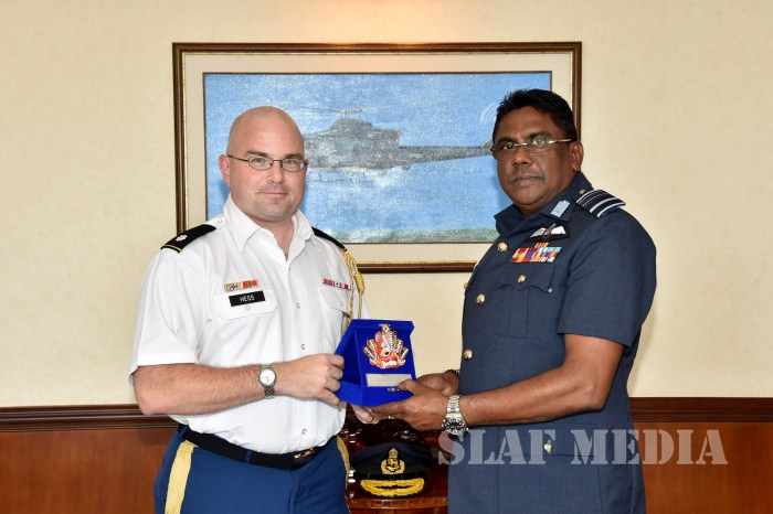 The outgoing Chief of Defence Staff General Crisanthe De Silva paid a farewell call on the Commander of the Sri Lanka Air Force, Air Marshal Kapila Jayampathy, at the Air Force Headquarters yesterday morning (17 August 2017) to mark his official retirement.A Guard of Honour was conferred by the Colour Wing of SLAF. After the inspection of the parade, the outgoing CDS was received by the ...