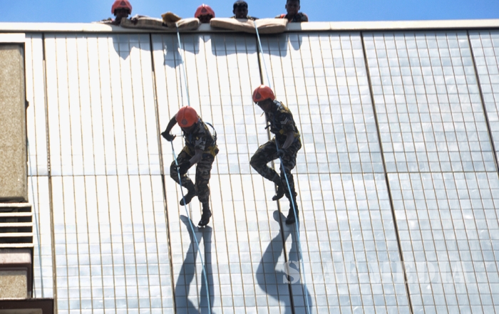 The Fire and Rescue Unit of the Sri Lanka Air Force assisted to carry out a fire drill at Central Bank, Colombo on 31st March, 2016.33 SLAF personnel participated in the fire fighting and rescue exercise with the supervision of SLAF Chief Fire Officer Group Captain PMCP Dias.The SLAF fire fighters demonstrated several rescue tactics such as aerial rope rescue and high angle rescue using ...