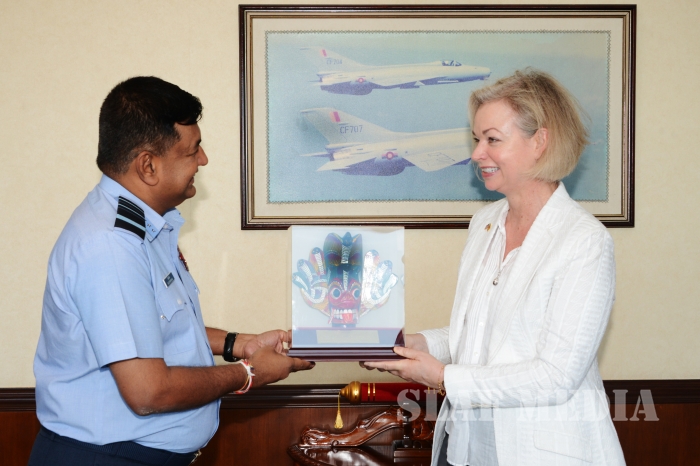 A Five member of State Department Democracy, Human Right and Labour (DRL) Leahy vetting team led   by Ms Carmela Conroy , Director South and Central Asia, DRL, paid a visit to the Air Force Headquarters for a meeting with Commander of the Air Force, Air Marshal Gagan Bulathsinghala, on 06 April 2016 at the Air Force Headquarters Colombo.On conclusion, Mementos were exchanged between...