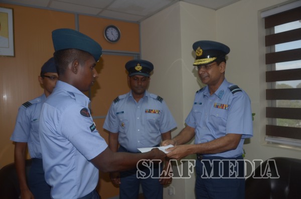 The Commander of the Air Force, Air Marshal Gagan Bulathsinghala awarded prizes to the winners of the Flight Safety Poster Competition 2015, this afternoon (14 Sep 2015) at Air Force Headquarters. The 1st Prize of 10,000 rupees was won by Sgt Gunawardana DCM, while the second prize of 7.500 rupees was won by Flight Sergeant Darnasiri KAR.  The third prize of 5,000 rupees was wo...