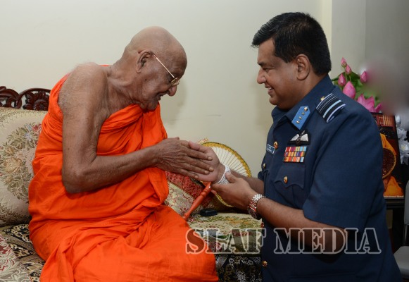 The Commander of the Air Force, Air Marshal Gagan Bulathsinghala, paid homage to the Temple of the Sacred Tooth, Kandy on 25th June 2015 seeking blessings on his new appointment. Prior to his visit to the Temple of the Sacred Tooth, he called on the Chief Incumbent of the Asgiriya Chapter, Ven. Galagama Dhammasiddi Sri Dhammananda Attadassi Thero.  Afterwards, he called on Chie...