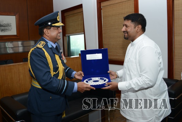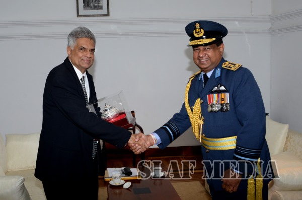 Commander of the Air Force, Air Marshal Gagan Bulathsinghala, paid a courtesy call on the Prime Minister, Hon. Ranil Wickramasinghe, at Temple Trees today ( 22 June 2015).The occasion being the Commander’s first official call on the Prime Minister upon assuming command of the Sri Lanka Air Force as its 15th Commander, mementoes were exchanged between the Prime Minister and the Commande...