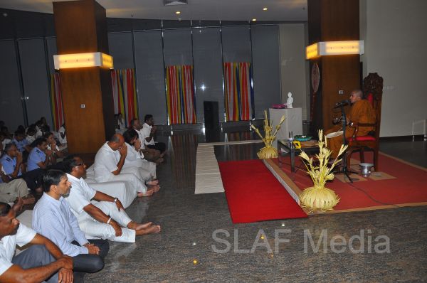 A Dharma Deshana programme presided by Venerable Walpola Ghothama thera was held at SLAF Headquarters on 21st August 2013. The Commander of the Air Force Air Marshal HD Abeywickrama, Chairperson of the Sri Lanka Air Force Seva Vanitha Unit Mrs. Neelika Abeywickrema, members from the Air Force Board of Management, senior officers, other ranks and civilians participated in the programme....
