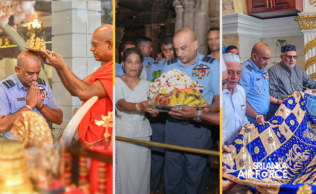 The Commander of the Air Force, Air Marshal Bandu Edirisinghe, visited several religious sites today (16 February 2025) to seek blessings for his new appointment and the responsibilities ahead.As part of his religious observances, the Commander first visited the Gangaramaya Temple in Colombo, where he met with Venerable Kirinde Assaji Thero and received blessings. He then proceeded to th...