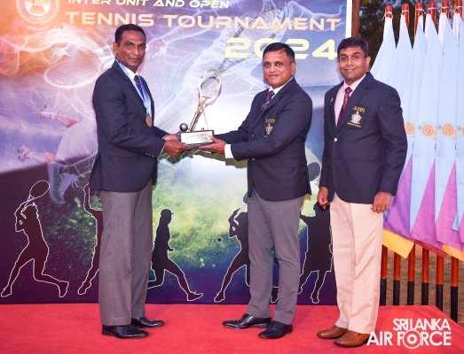 The Inter-Unit and Open Tennis Tournament -2024 was held at the Tennis Courts Complex, SLAF Trade Training School Ekala, from 29 April to 07 May 2024.The Tennis Team, SLAF Station Colombo, won the team event and secured the Champion's trophy, while SLAF Academy China Bay emerged as Runner-Up in the Inter-Unit Tennis Tournament 2024.The Awards Ceremony was held at the same venue yesterday...