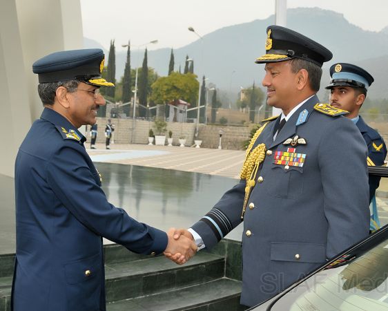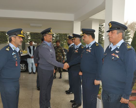 The Commander visited PAF Headquarters in Islamabad on Monday, February20, 2012 and was received by the Pakistani Air Chief. The Commander was accorded a Guard of Honour by a smartly turned out contingent of PAF and thereafter, he called on Air Chief Marshal Rao Qamar Suleman for a discussion on matters of mutual interest. The two Air Chiefs exchanged mementos to mark this momentous occasion.