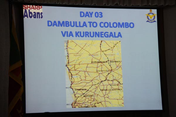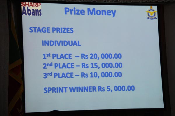 The race will commence on 15 March 2012 from Colombo to finish at Palaviya (147Km). On the following day the race will start from Puttalam and finish at Dambulla (148Km). On the third day the race will start from Dambulla to finish at Colombo in front of the SLAF Headquarters Colombo (160Km). In addition to the Men’s race a Women’s race will commence on 17 March 2012 from Meerigama to finish at Colombo in front of the Air Force Headquarters (54 Km) .
