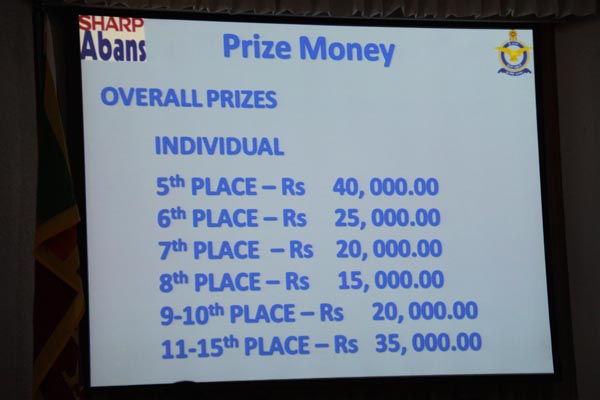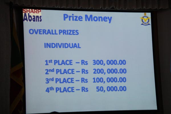 The awards ceremony will be held at the Rifle Green grounds at SLAF Colombo at 1800 Hrs on 17 March 2012 where the Commander of the Air Force Air Marshal Harsha Abeywickrama along with sponsors and other distinguished guests will grace occasion.