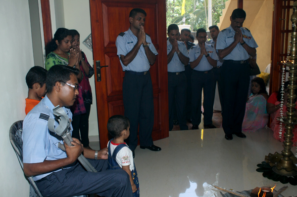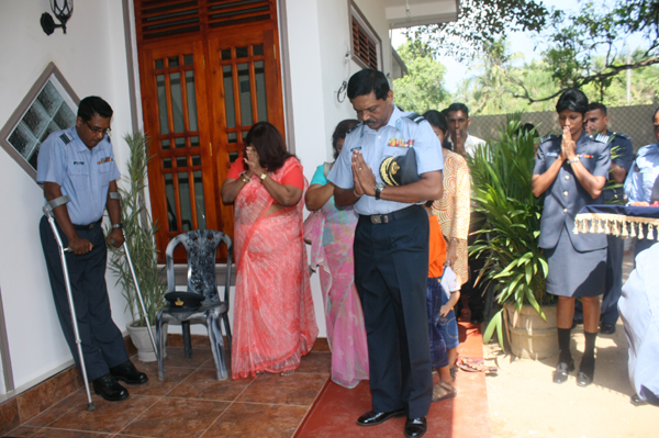 A newly built house was handed over to Flight Lieutenant NI Wellahewa by The Chairperson of Sri Lanka Air Force Seva Vanitha Unit (SVU) Mrs. Neelika Abeywickrama at the auspicious time of 10.25 am on 05th April 2012.