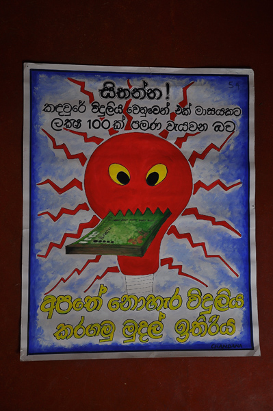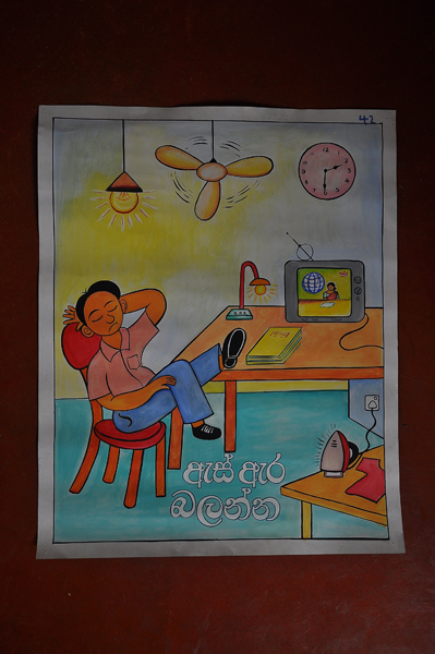 A poster competition was held at the SLAF Base Katunayake to highlight the importance of saving electricity. Hundreds of posters were displayed in front of the “Astra Cinema” for all to view and admire. Of these the best three were selected by the panel.