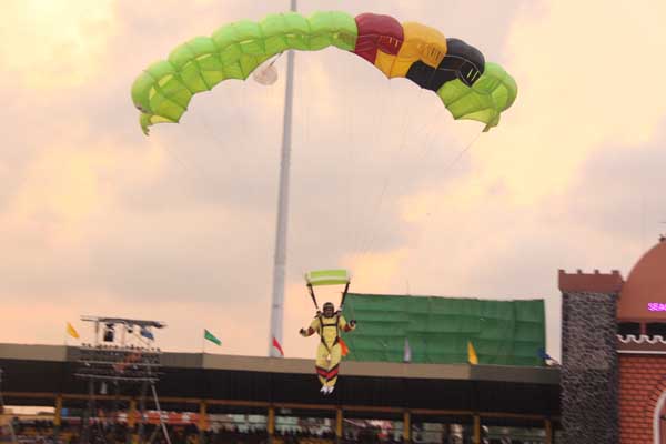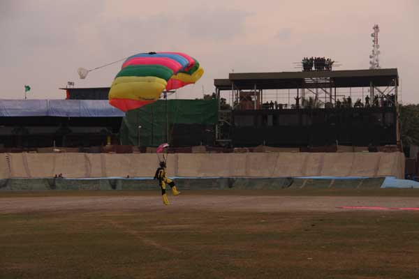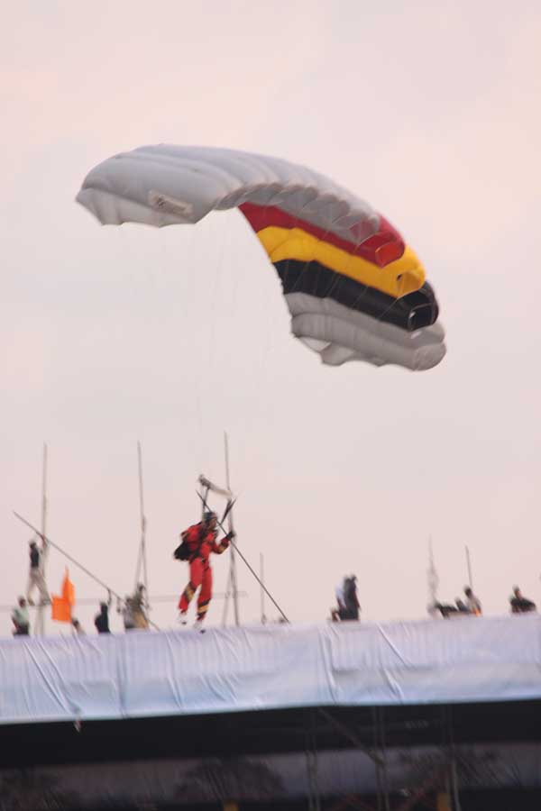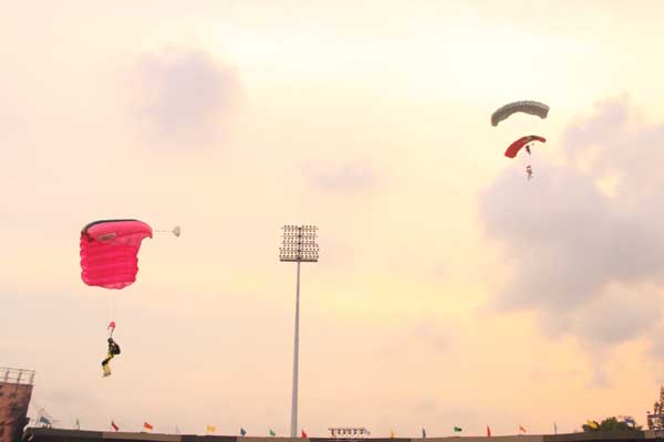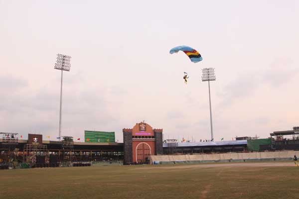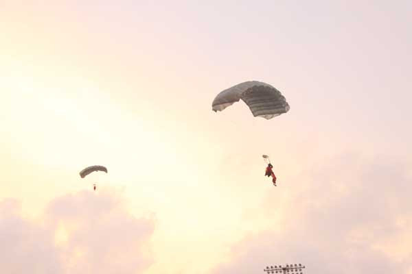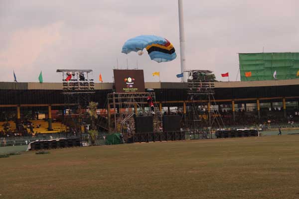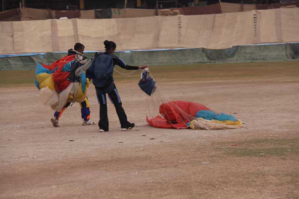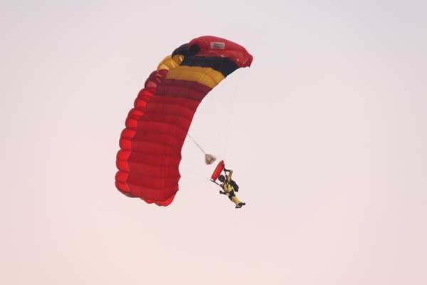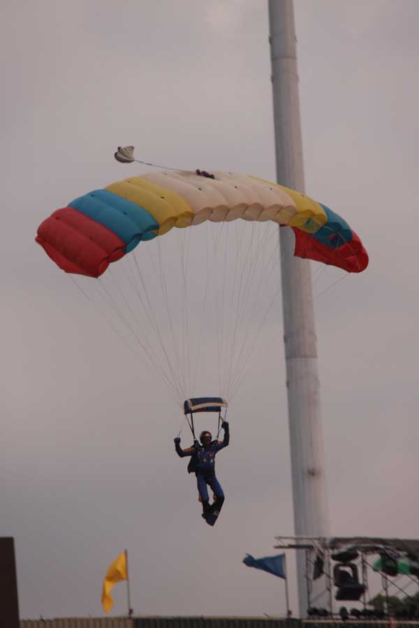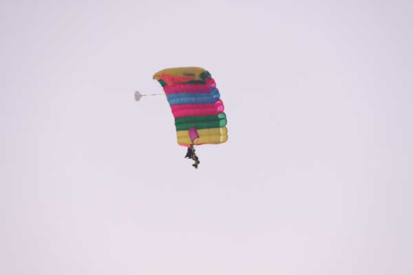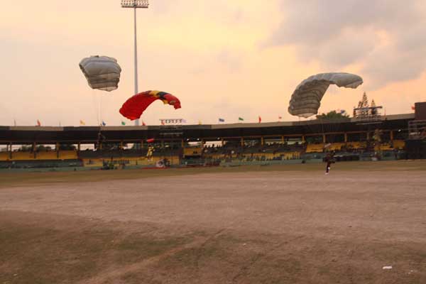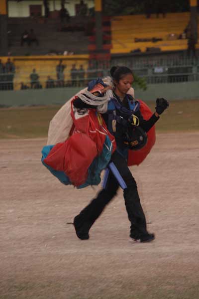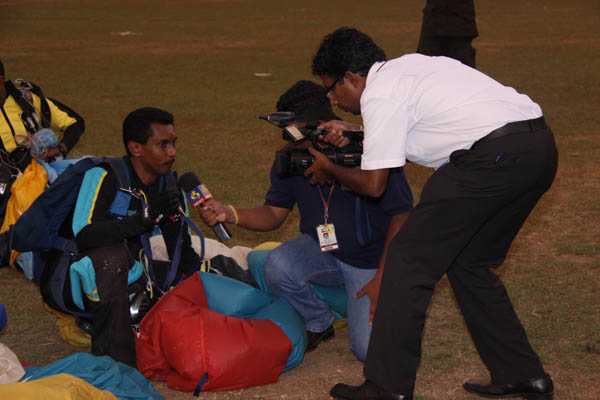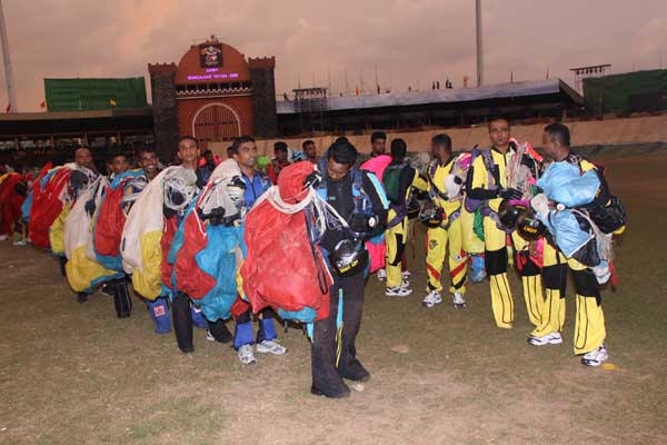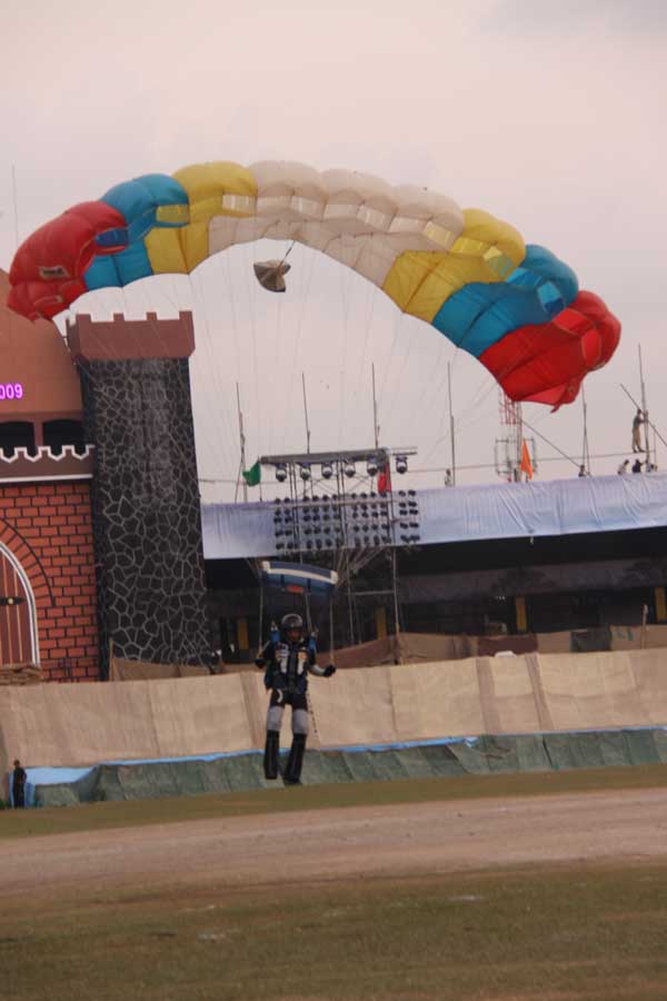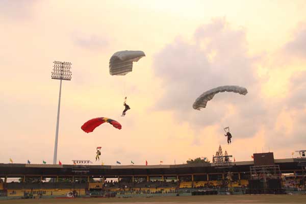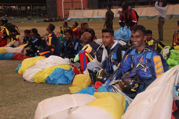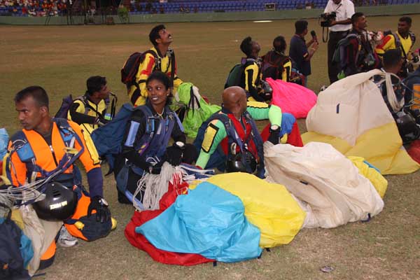 The Sri Lanka Air Force(SLAF) skydiving team comprising of 03 Airwomen are scheduled to perform this evening(17 October 2009) at a parachute display at the Sri Lanka Army 60th anniversary celebrations better known as the Army Tattoo. A total of 30 experienced jumpers inclusive of 10 members from the SLAF will skydive from approximately 5000 Ft in which they will open their parachutes manually at 3500 Ft. The significance of this event would be that the individuals have very limited room for error as their landing should be very precise if they are to land at the Keththara stadium.