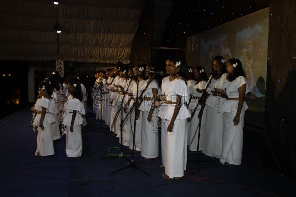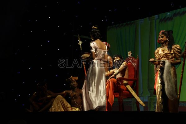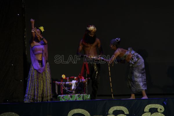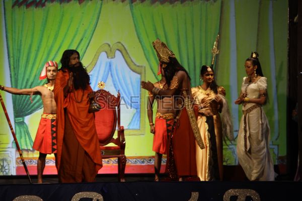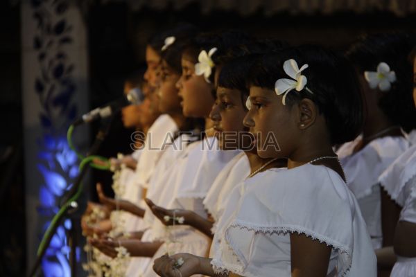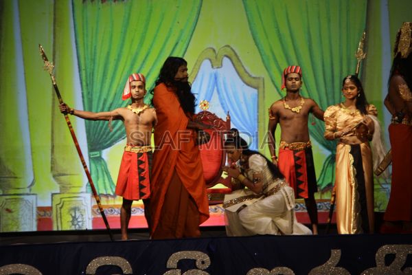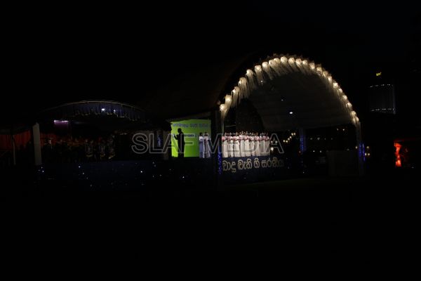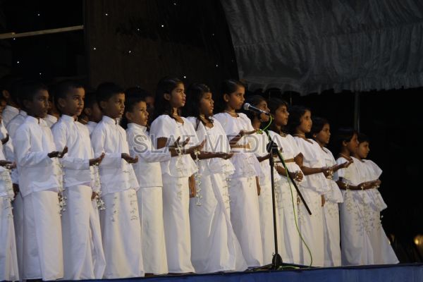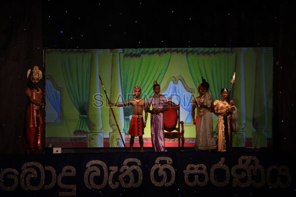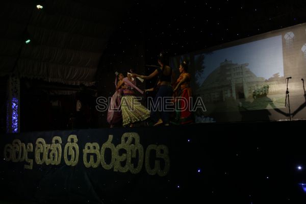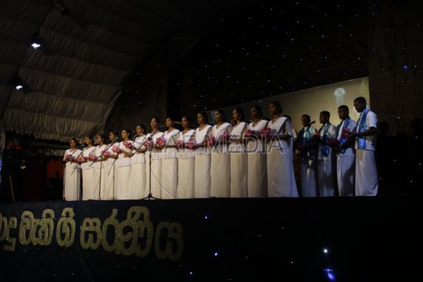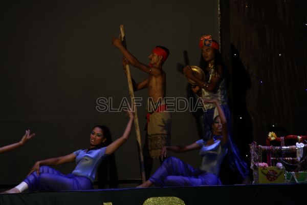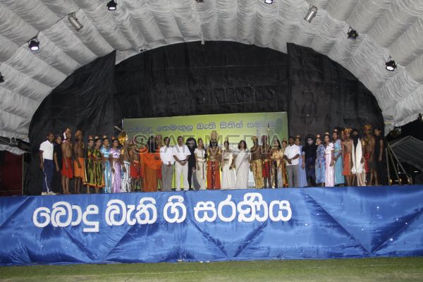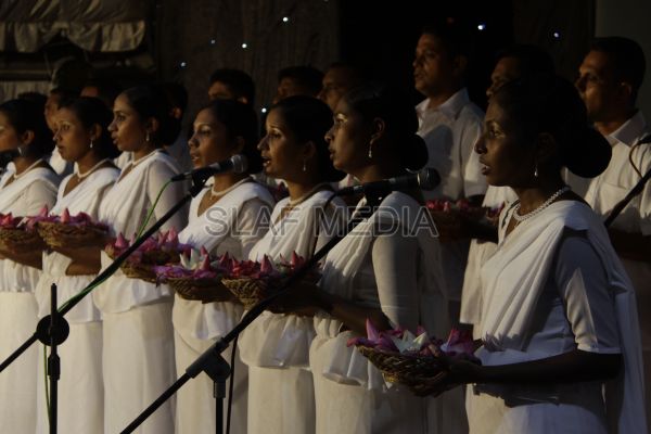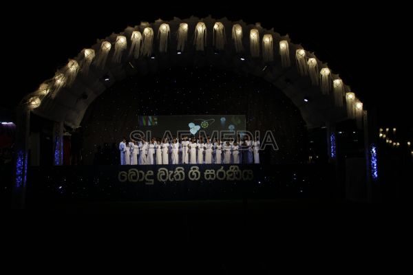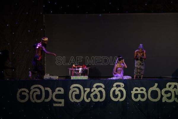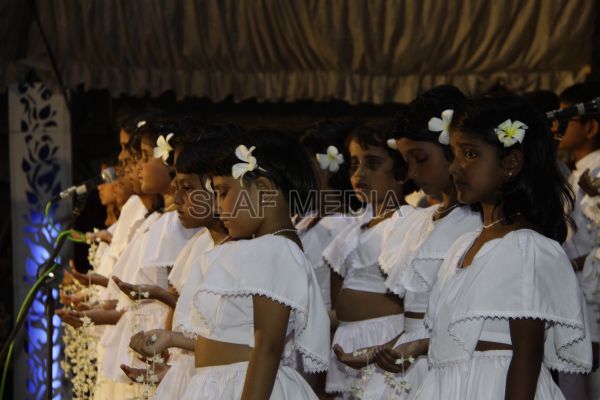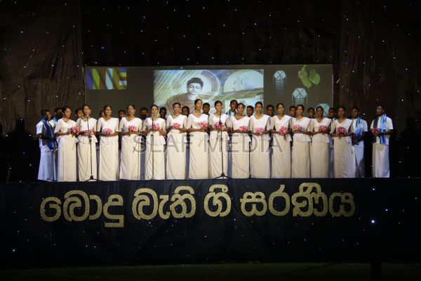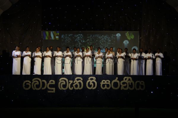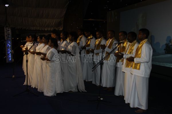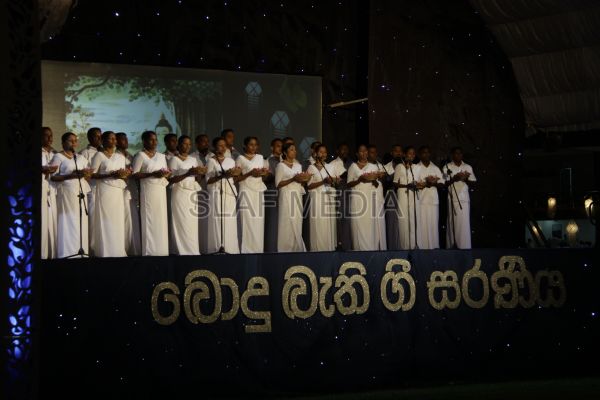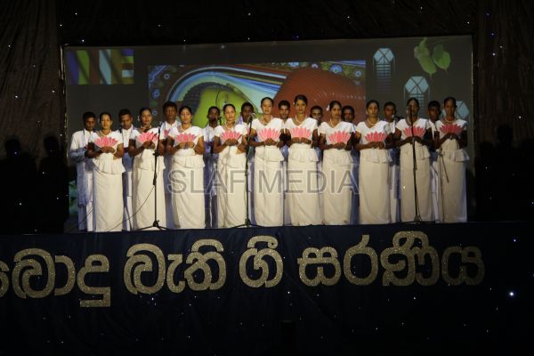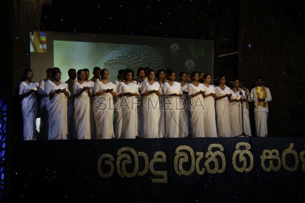‘Vesak Bathi Gee Saraniya 2012’ consisted of 12 famous soul-soothing songs sung by various artistes extolling the life and deeds of the Lord Buddha. The songs were sung by five choirs of SLAF personnel and their family members, each choir comprising thirty personnel. SLAF Colombo Officers’ Mess, SLAF Colombo WOs’ & SNCOs’ Mess, SLAF Colombo Corporals’ Club & LACs’ Club, Children of SLAF Colombo Officers & Other Ranks and the SLAF Band formed up the five choirs. The special feature of the show was the ballet choreographed and performed by the SLAF Band highlighting the "Serivanija Jathakaya" and "Sambula Jathakaya"performed by the SLAF Station Colombo personal.