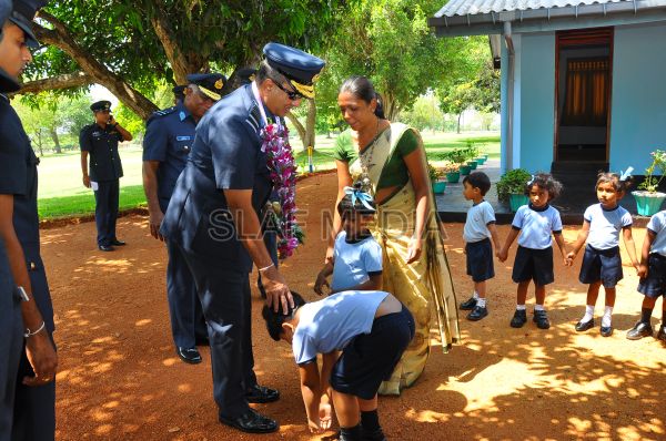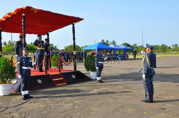 The Commander was welcomed to the base with a parade commanded by the Base Commander of SLAF Vavuniya Air Commodore Vijitha Gunaratne.