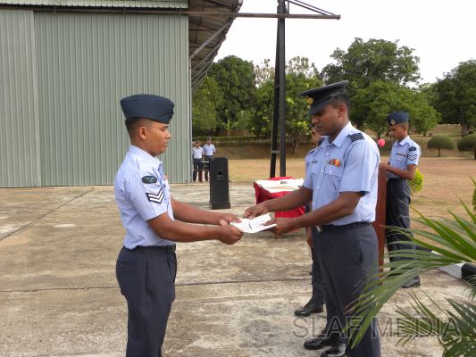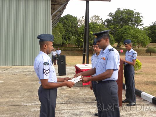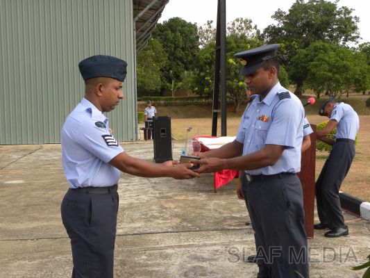 To mark the event, the formation day parade was held on 1st June 2012. At the parade, “Airman of the Year” award was presented to 22034 Sgt Perera WPC (Aero Eng) and also three merit certificates were awarded to the 19038 Sgt Palipana UBW (Aero E&I), 25726 Cpl Gunasekara (Air Radio) and 022667 AC Prabath WS (Plant Optr), who have performing outstandingly during the year 2011.