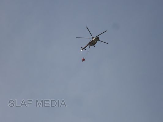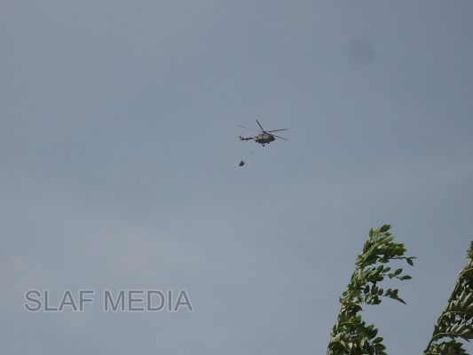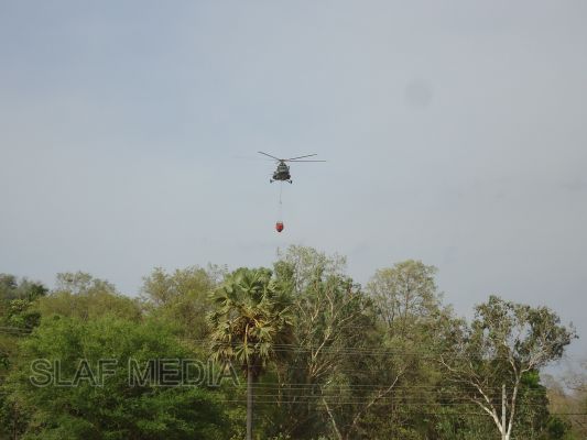 firefighting 'Bambi Bucket' water drops in Hasalaka Morayaya area and