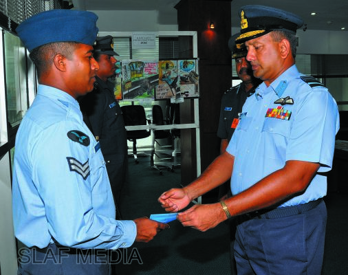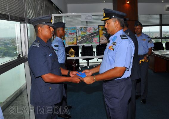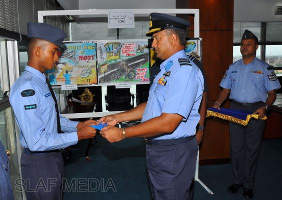 The winners of this competition received cash prizes from the Commander of the Air Force, Air Marshal HD Abeywickrama, at a brief ceremony held at the Air Force Headquarters yesterday (19th June 2012), at 0900 hrs. Base Commander of SLAF Base Katunayaka and Command Flight Safety Officer (CFSO), Air Commodore DLS Diaz, too was present at the ceremony.