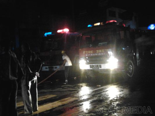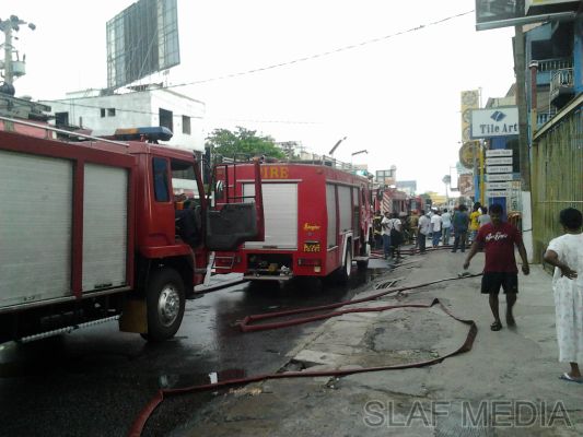SLAF Firefighters responded to a call for assistance from the Mt Lavinia Fire Brigade, to help fight the fire which broke out in a 3 – storey private tyre and wheel shop in Mt Lavinia during the early hours of 25th June (today).