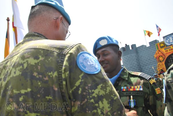 During this Medal awarding ceremony peace keepers of Sri Lanka Air Force consisting Wing Commander Sulochan Marapperuma , Wing Commander Roshan Gunawardana and 42 Airmen are awarded with United Nation Medal.