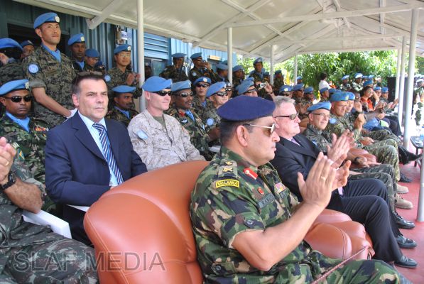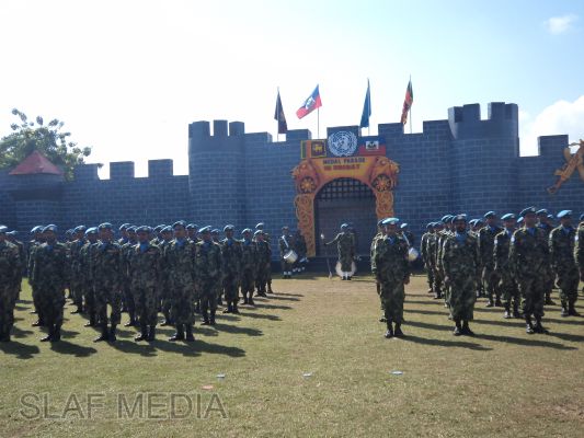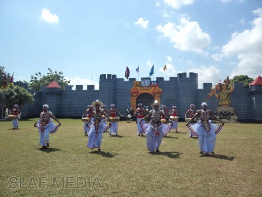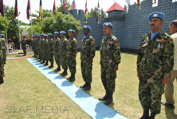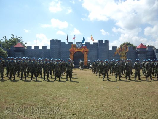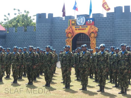 Decorations, including a Lion Thorana, Replica of Military Victory statue and traditional Royal castle in the background of the parade ground created a spirit of celebration. While fluttering the UN and Sri Lankan National flags, Sri Lankan Peace Keepers honored their visiting Chief Guest and the Force Commander on their arrival at the venue to the medal parade ceremony by according them a Guard Turn Out and a special Guard of Honor, in accordance with military traditions.