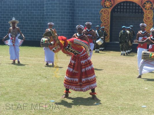 At the end of the military segment of the ceremony, Sri Lankan troops adding elegance and colour to the occasion impressed the spectators, by presenting a string of performances that depicted out ancestral cultural ethos and heritage. Traditional ‘Wesnatuma’ Salu paliya’, ‘Nagaraksha Dancing’, ‘Drum playing’, and Korean Taekwondo display staged on the occasion drew a rapturous applause from the gathering.