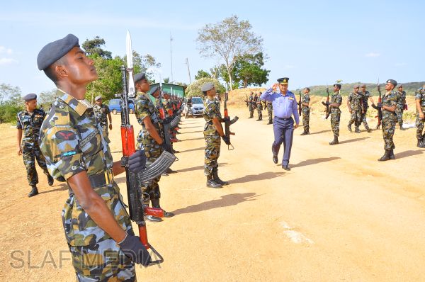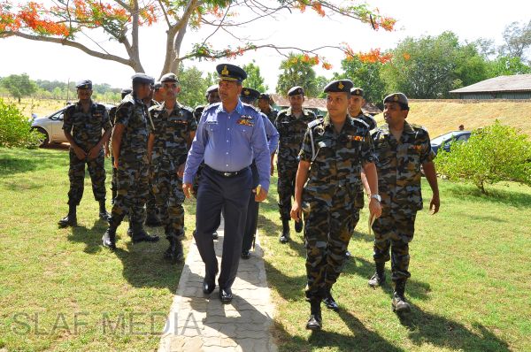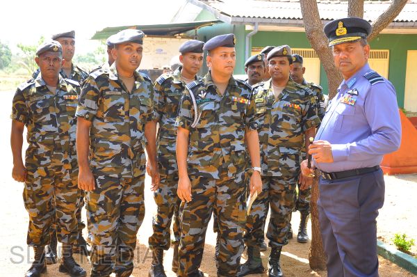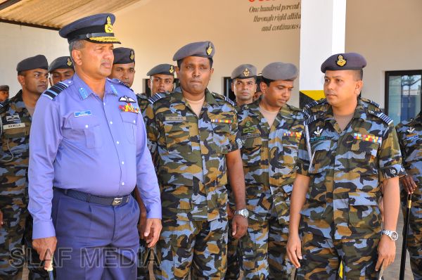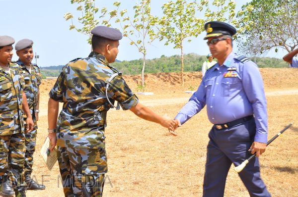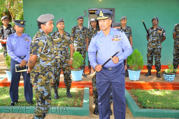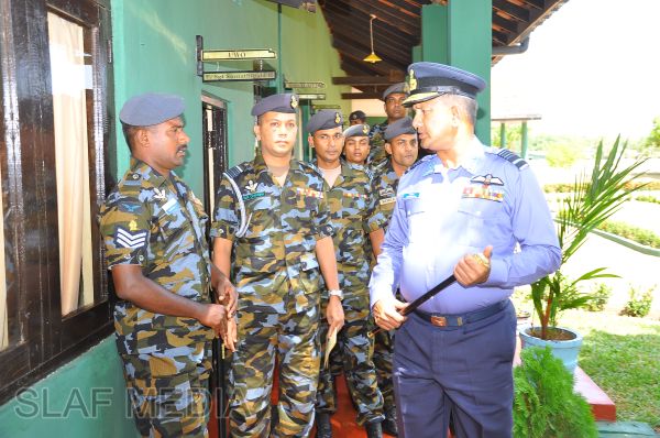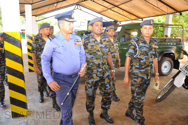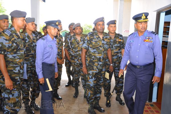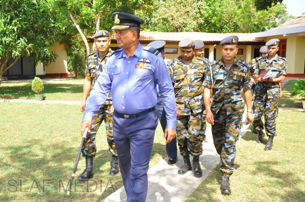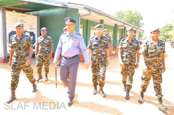 The Commander, upon arrival for the inspection, was received into the camp premises by the Commanding Officer Wing Commander HWR Chandima through a street lining of airmen commanded by Flight Lieutenant BWCS Bandara.