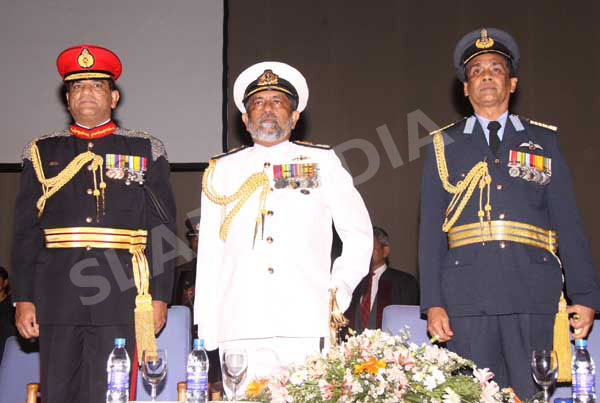 Rajapakse, President Secretary Lalith Weeratunga and the three Commanders of