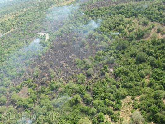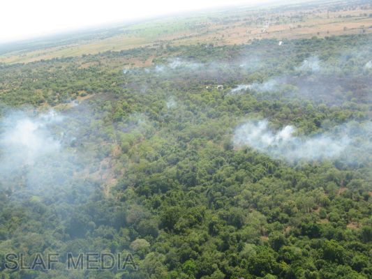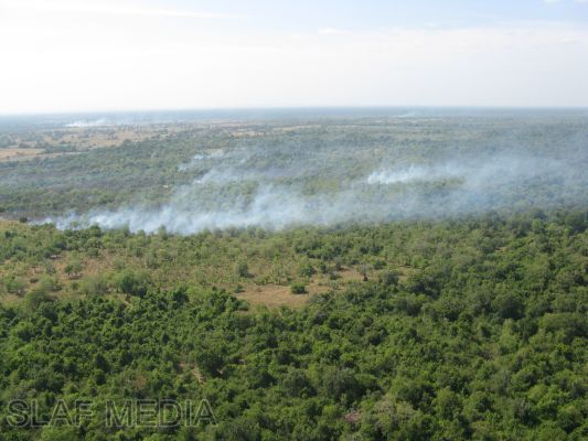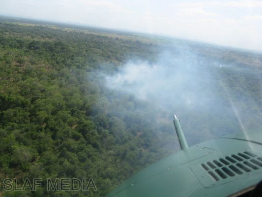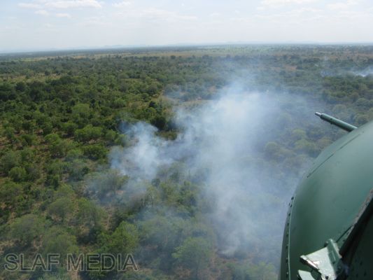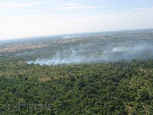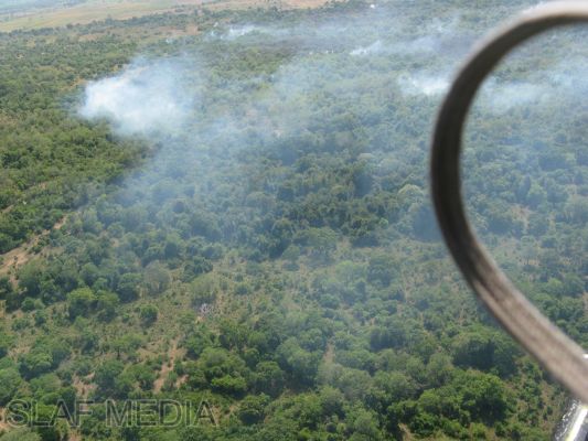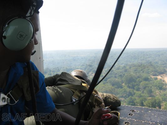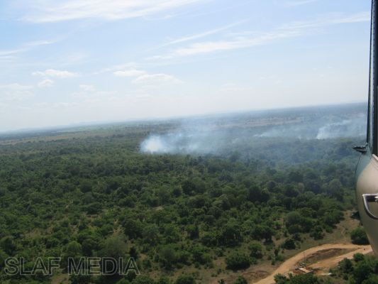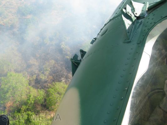 A Bell helicopter of No 7 Helicopter Squadron at SLAF Hingurakkgoda was pressed into action late this morning to assist in fighting a forest fire which raged in the Sungawila jungle area close to the Somawathie Chaithya in Pollonnaruwa today (August 02, 2012).