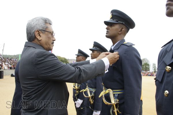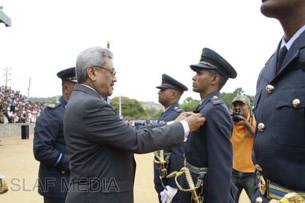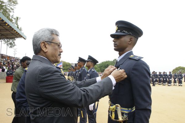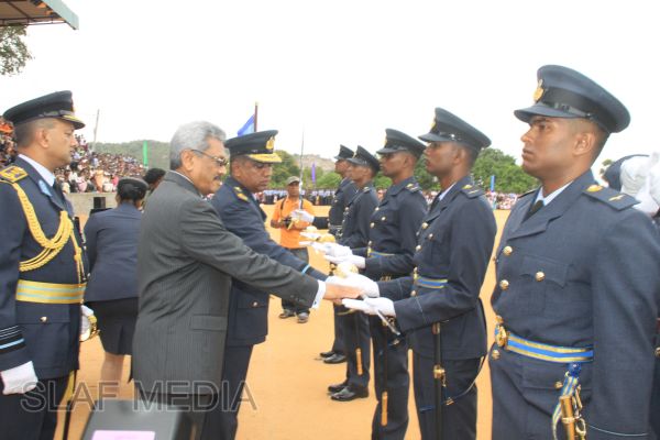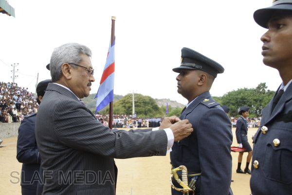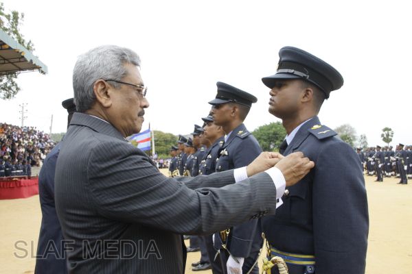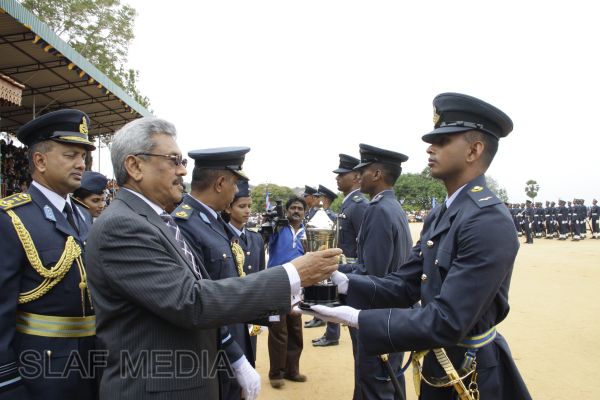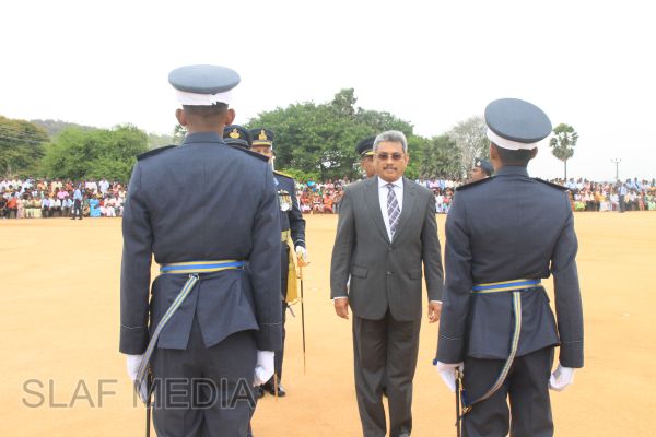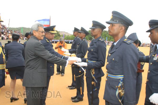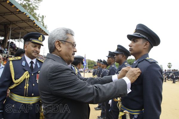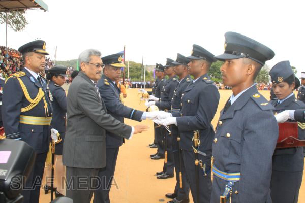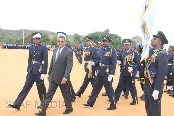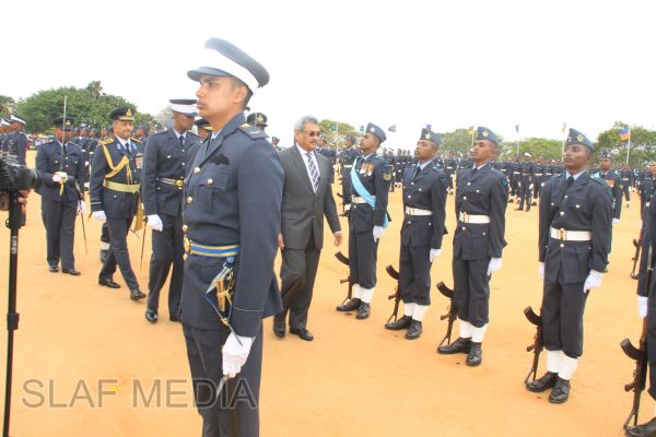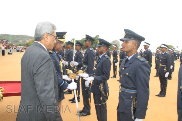 83 Officers from the 53rd Intake of Officer Cadets’ and 386 Airmen of the 151st Regular Airmen’s Recruit Course passed out from the historical SLAF Academy China Bay during the morning hours of 4th August 2012. Also on this occasion 11 Pilot Officers including one Officer from the 52nd Intake Officer Cadet Course received their Flying Brevet from the Secretary to the Ministry of Defence Mr. Gotabaya Rajapaksa RWP, who graced the occasion as the Chief Guest. The Chief of Defence Staff Air Chief Marshal WDRMJ Goonetileke, The Commander of the Air Force Air Marshal HD Abeywickrama, the Board of Management of the SLAF, and several top brass of the SL Army, SL Navy, and SL Police of Trincomalee District also attended the event. The Commandant of the SLAF Academy China Bay, Air Commodore SK Pathirana received the Chief Guest and other distinguished guests on the arrival.