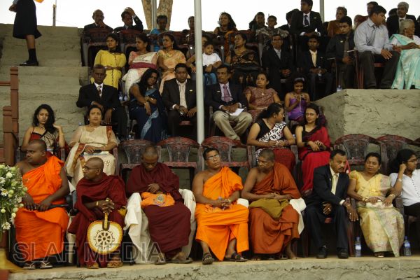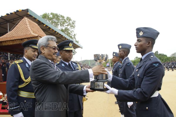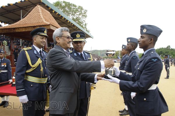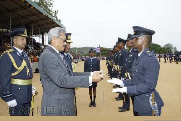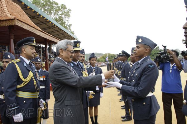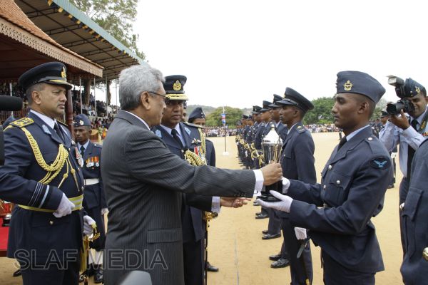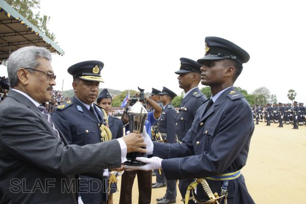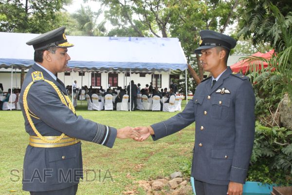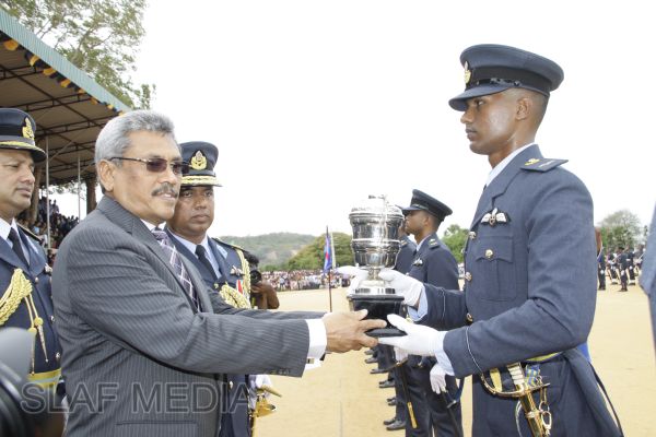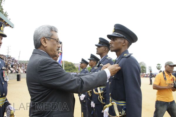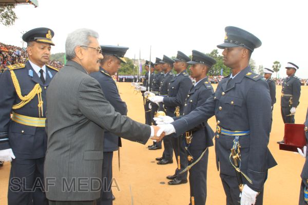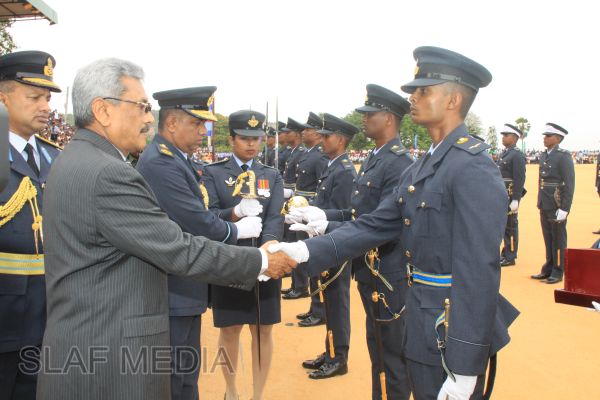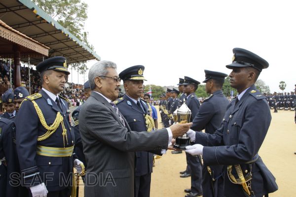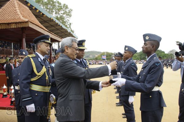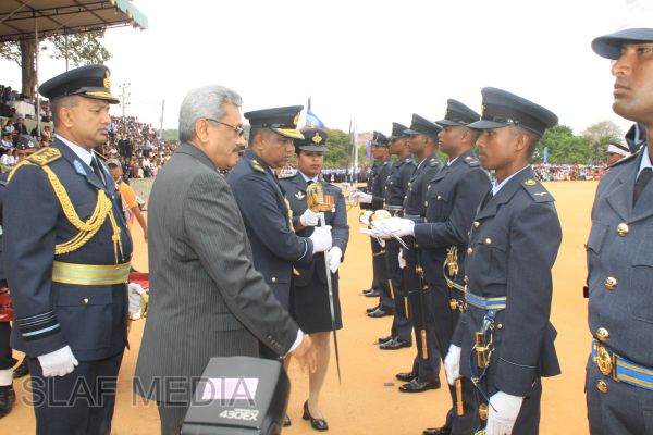 83 Officers from the 53rd Intake of Officer Cadets’ and 386 Airmen of the 151st Regular Airmen’s Recruit Course passed out from the historical SLAF Academy China Bay during the morning hours of 4th August 2012. Also on this occasion 11 Pilot Officers including one Officer from the 52nd Intake Officer Cadet Course received their Flying Brevet from the Secretary to the Ministry of Defence Mr. Gotabaya Rajapaksa RWP, who graced the occasion as the Chief Guest. The Chief of Defence Staff Air Chief Marshal WDRMJ Goonetileke, The Commander of the Air Force Air Marshal HD Abeywickrama, the Board of Management of the SLAF, and several top brass of the SL Army, SL Navy, and SL Police of Trincomalee District also attended the event. The Commandant of the SLAF Academy China Bay, Air Commodore SK Pathirana received the Chief Guest and other distinguished guests on the arrival.