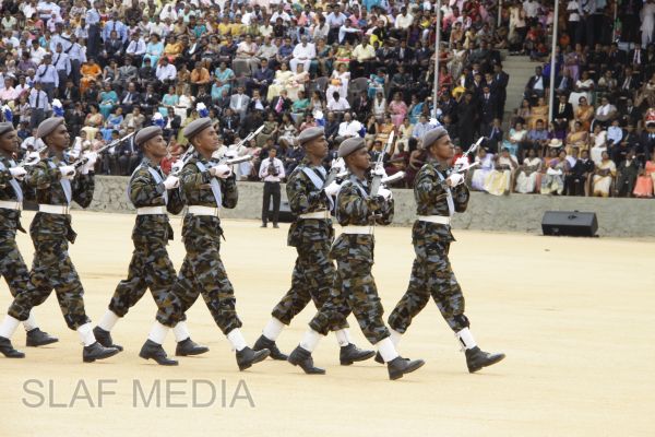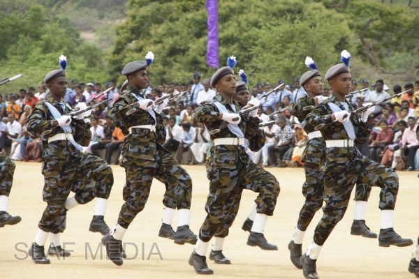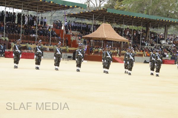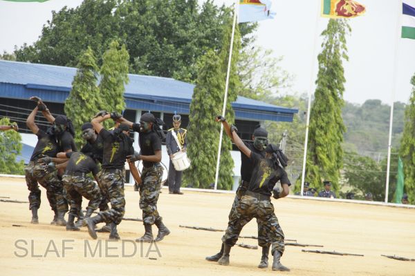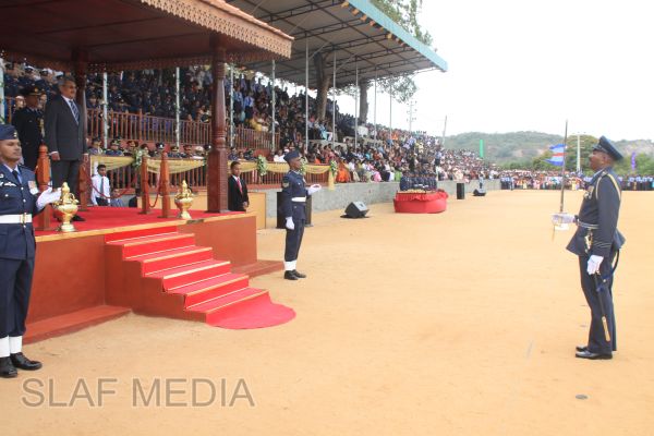 The Officer Cadets of the 53rd Intake have successfully completed 3 years of the most demanding and challenging training whilst the Airmen of the 151st Regular Airmen Recruit Course followed a 24 week Basic Combat Training. The Parade, which was commanded by the Commanding Officer of Combat Training School Wg Cdr PSN Fernando, was followed by an Aerobatic display of K8 and PT6 aircraft, flown by Qualified Flying Instructors (QFIs) of No.1 Flying Training Wing Commanded by Sqn Ldr MN De Alwis. This display was then followed by an Unarmed Combat display, a Drill Display, and a Camp Attack Display by personnel of the No.151st Regular Airmen Recruit Course.
